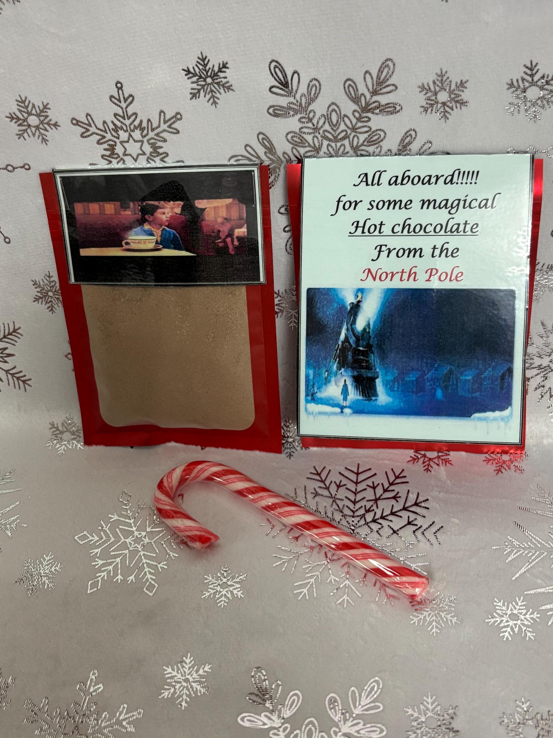 A packet of hot chocolate with a candy cane ( MEASURES 8CM)