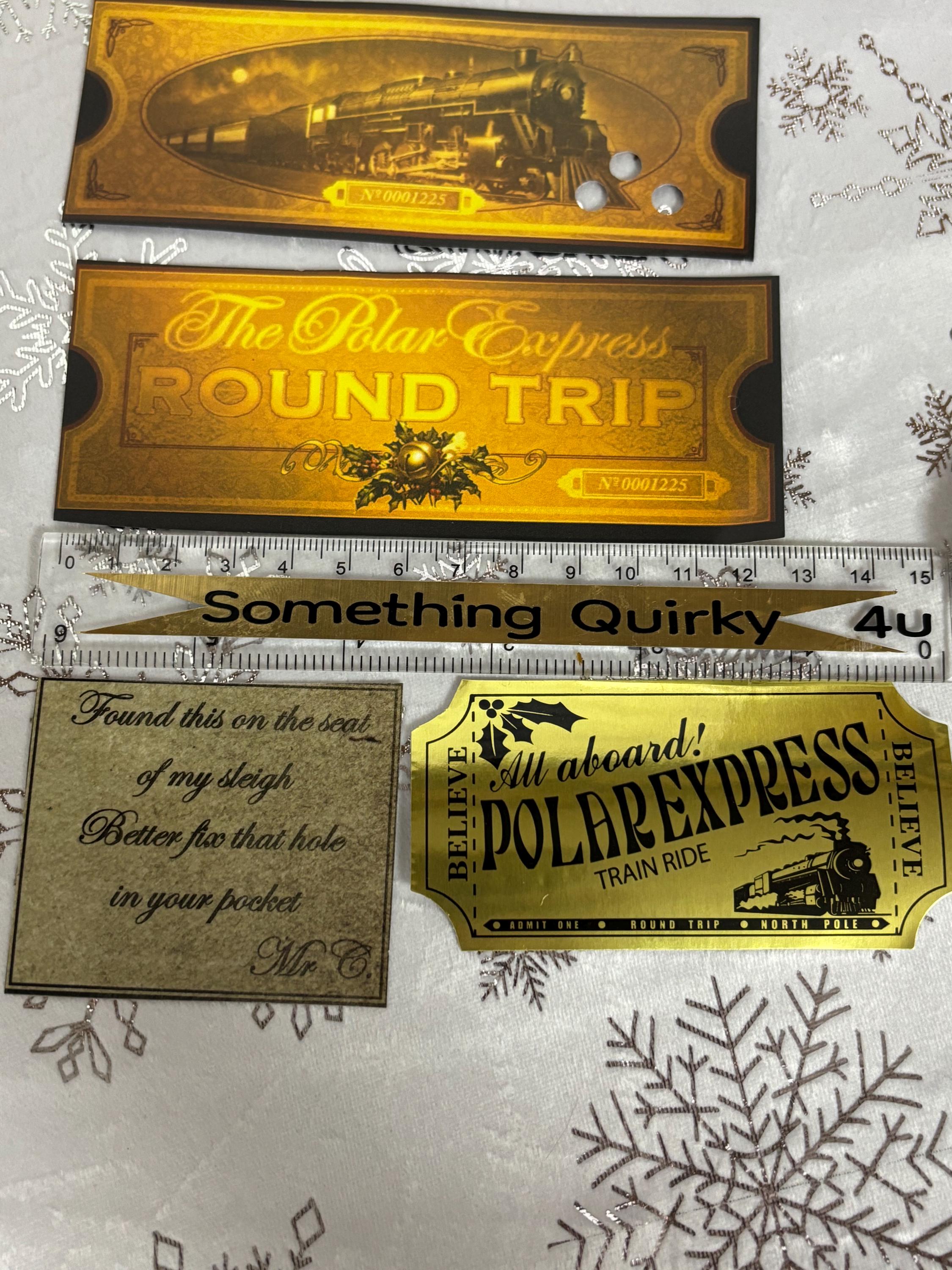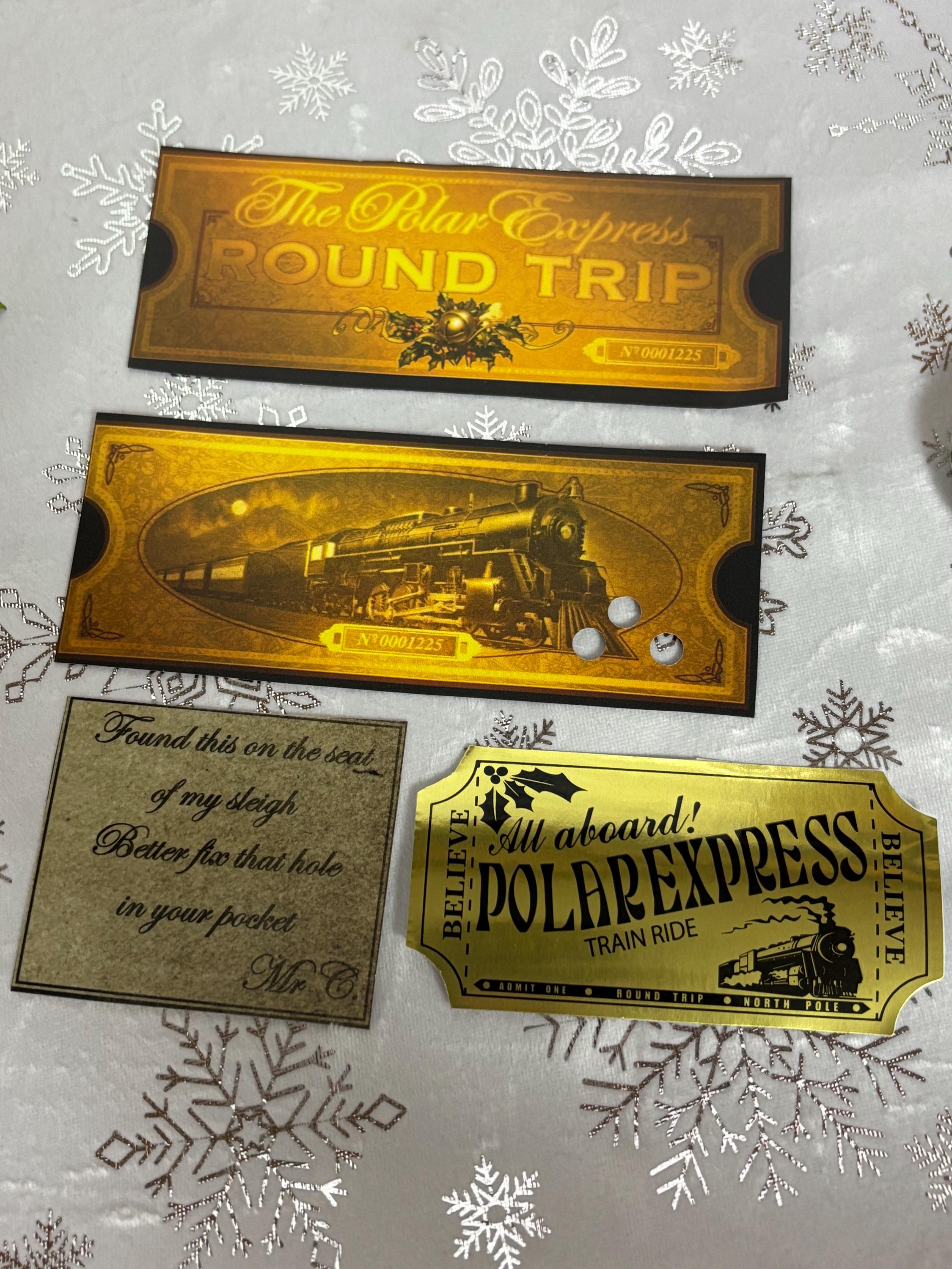 2 gold double sided believe train ticket one hole punched ( MEASURES 9cm Long )